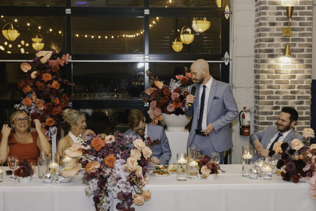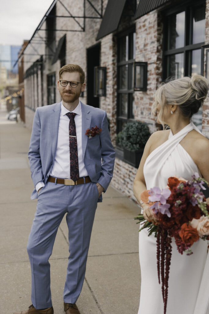 Hosted at The Austin, a modern and stylish venue nestled in the heart of the Crossroads Arts District in Kansas City, their celebration perfectly blended industrial charm with personal touches. The design inspiration began with just two floral photos and snapshots of Paulβs attire and the bridesmaidsβ dresses. With a clear vision for structure and color, we gave our trusted vendor team the creative freedom to work their magic – and they absolutely delivered.