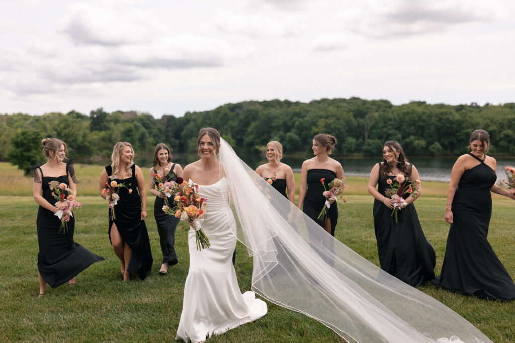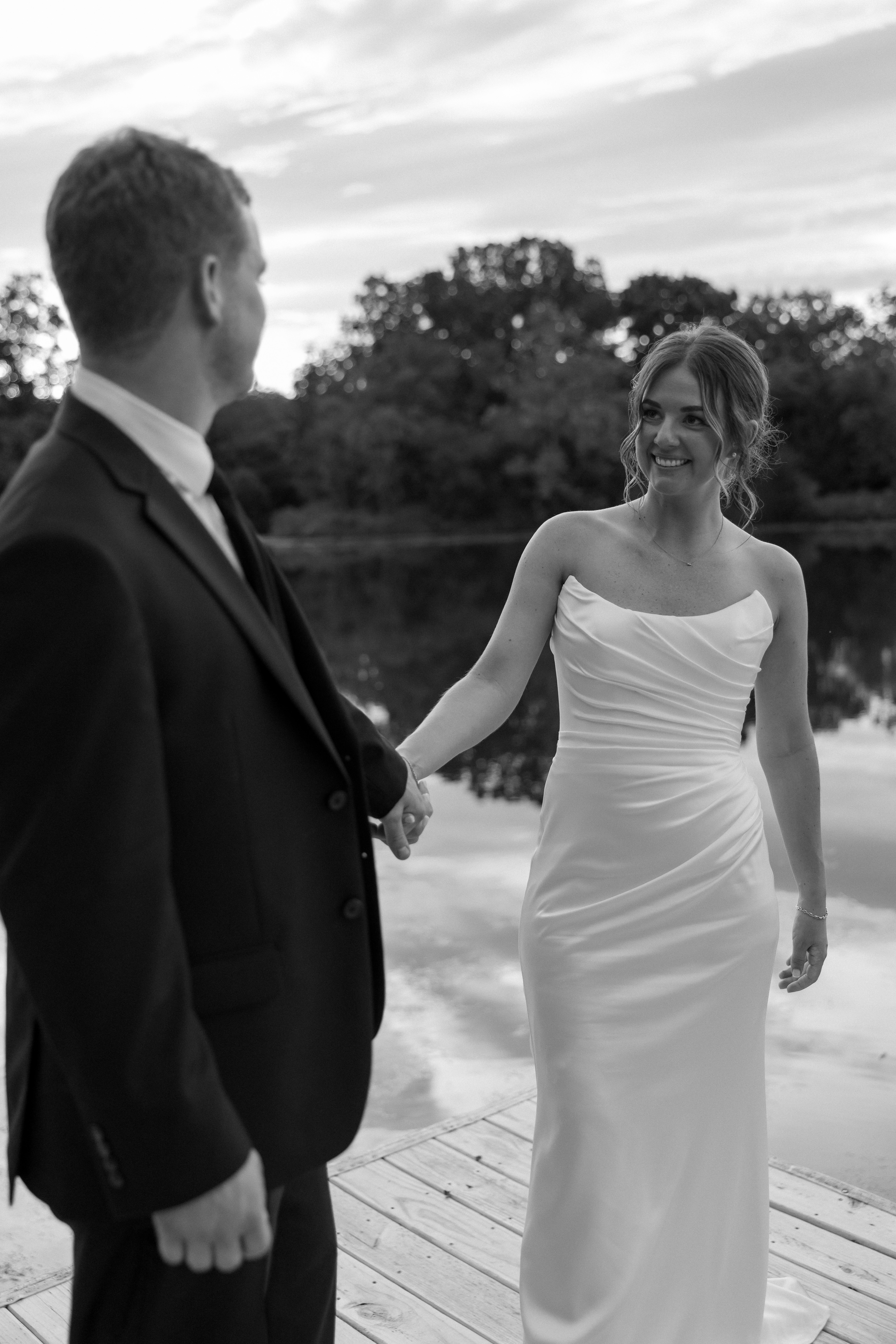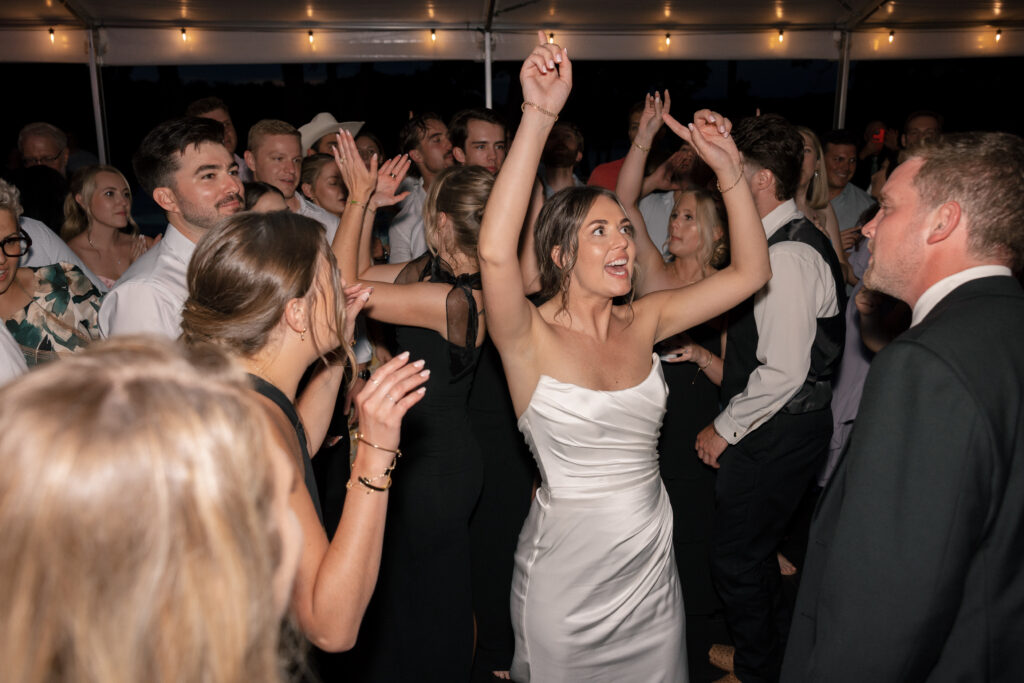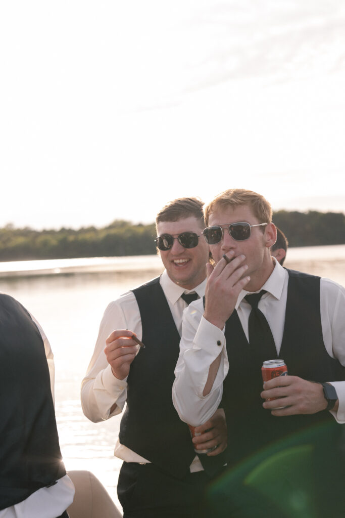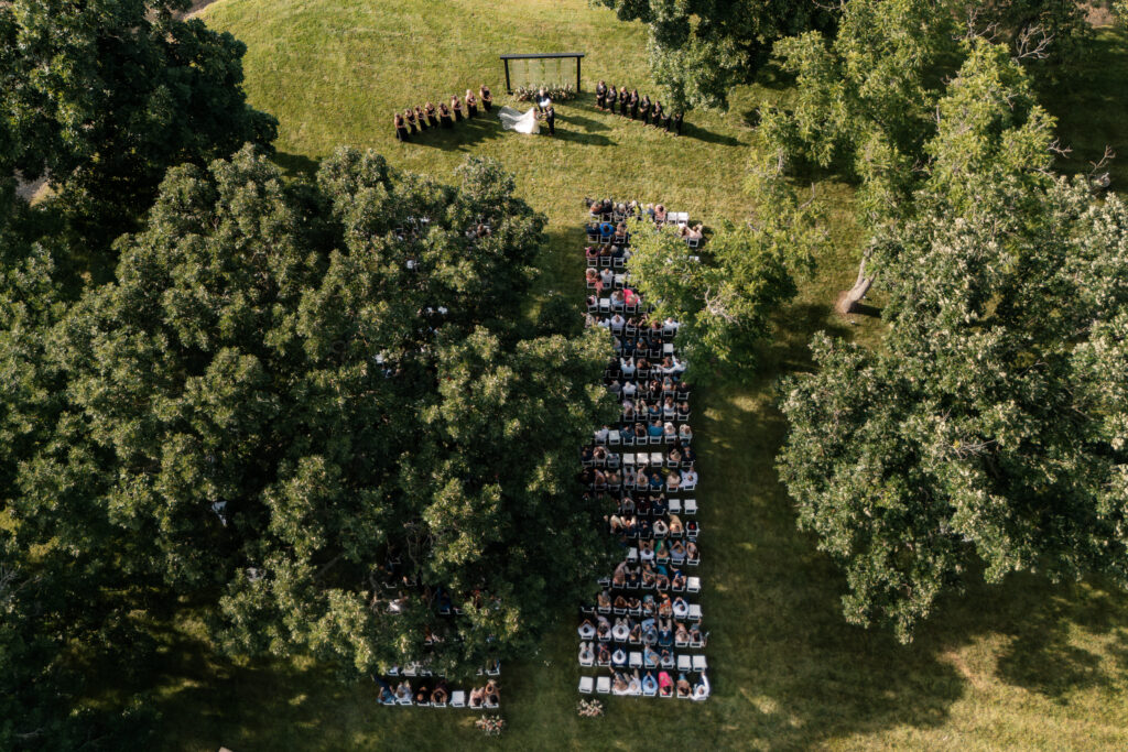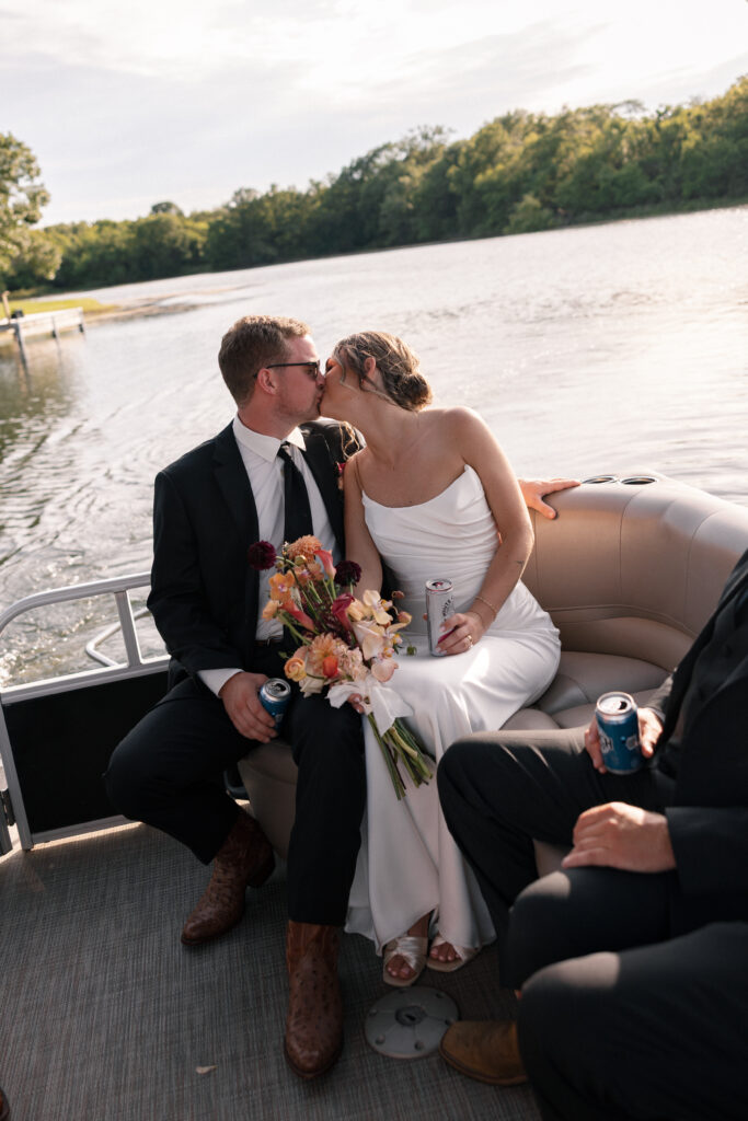 Mallory and Chandler celebrated their wedding on the most meaningful venue imaginable – Malloryβs family land – surrounded by 320 of their closest friends and family. From the moment guests arrived, they were immersed in the coupleβs thoughtful hospitality, beginning with a glass of champagne before boarding boats to cross the lake to the ceremony and reception site.