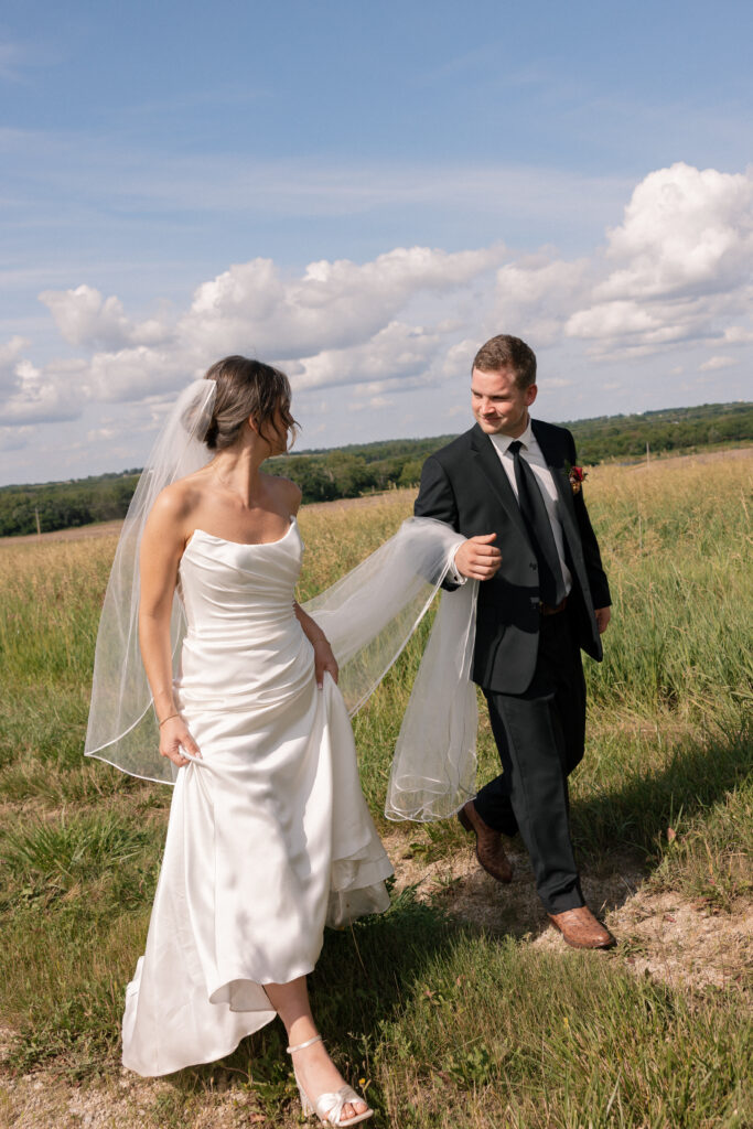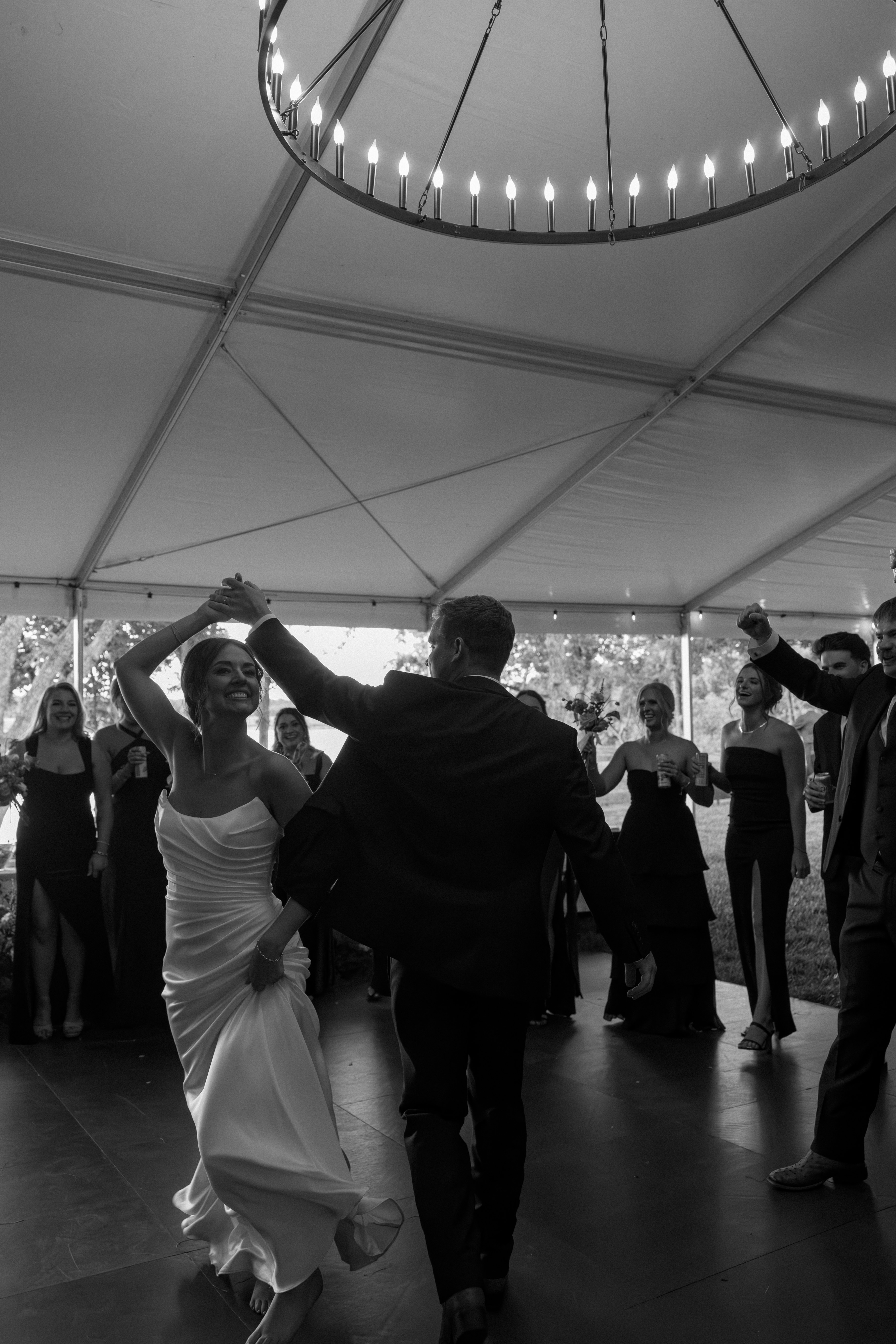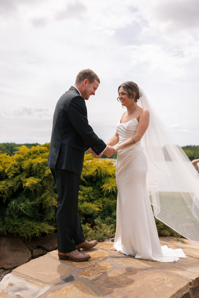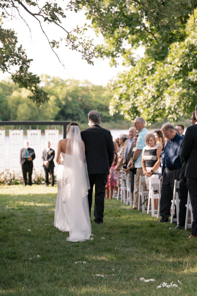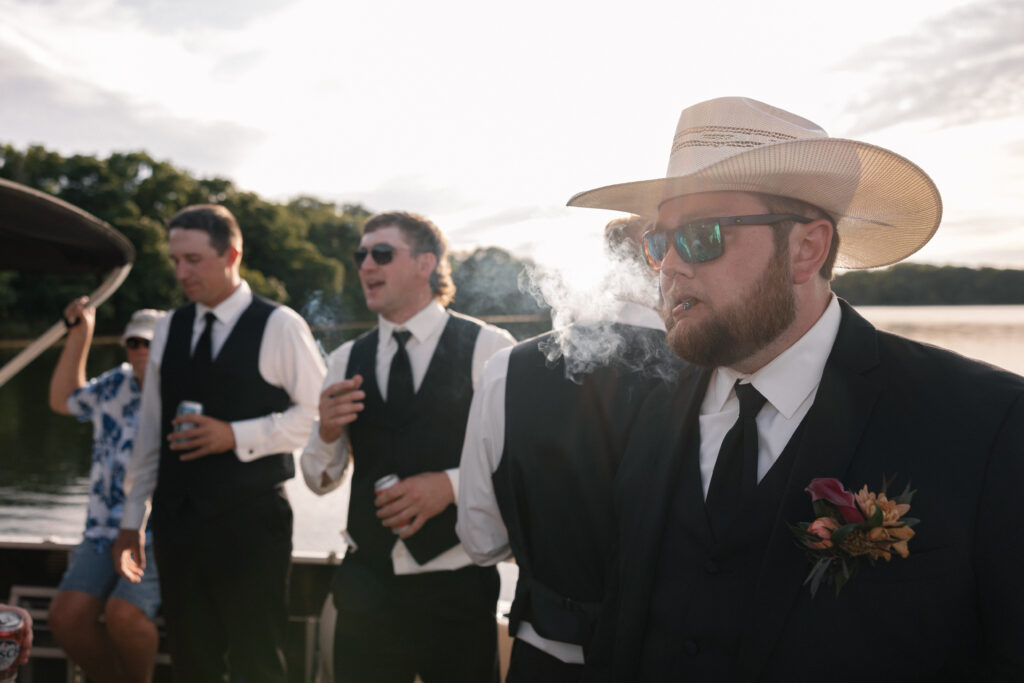 Mallory and Chandler celebrated their wedding on the most meaningful venue imaginable – Malloryβs family land – surrounded by 320 of their closest friends and family. From the moment guests arrived, they were immersed in the coupleβs thoughtful hospitality, beginning with a glass of champagne before boarding boats to cross the lake to the ceremony and reception site.