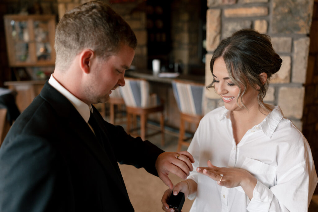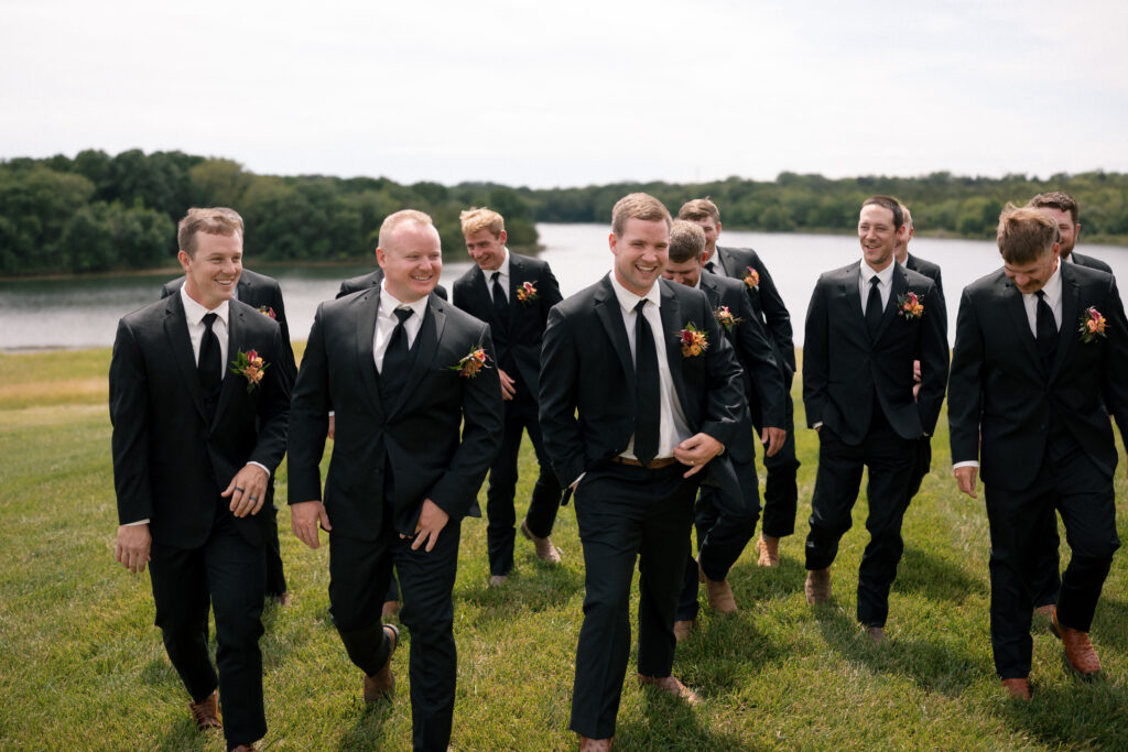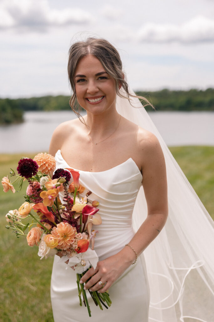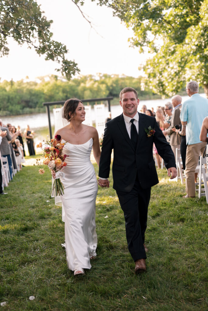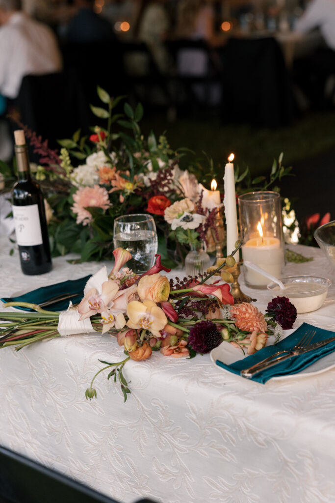 When it came to the design, Mallory and Chandler wanted their celebration to feel warm, welcoming, and true to them. We blended soft, natural patterns with pops of Malloryβs favorite color – teal – bringing personality and vibrancy to the lakeside setting. The overall aesthetic was intentionally cozy and cohesive, allowing the surrounding nature to shine while creating a comfortable and inviting atmosphere.
