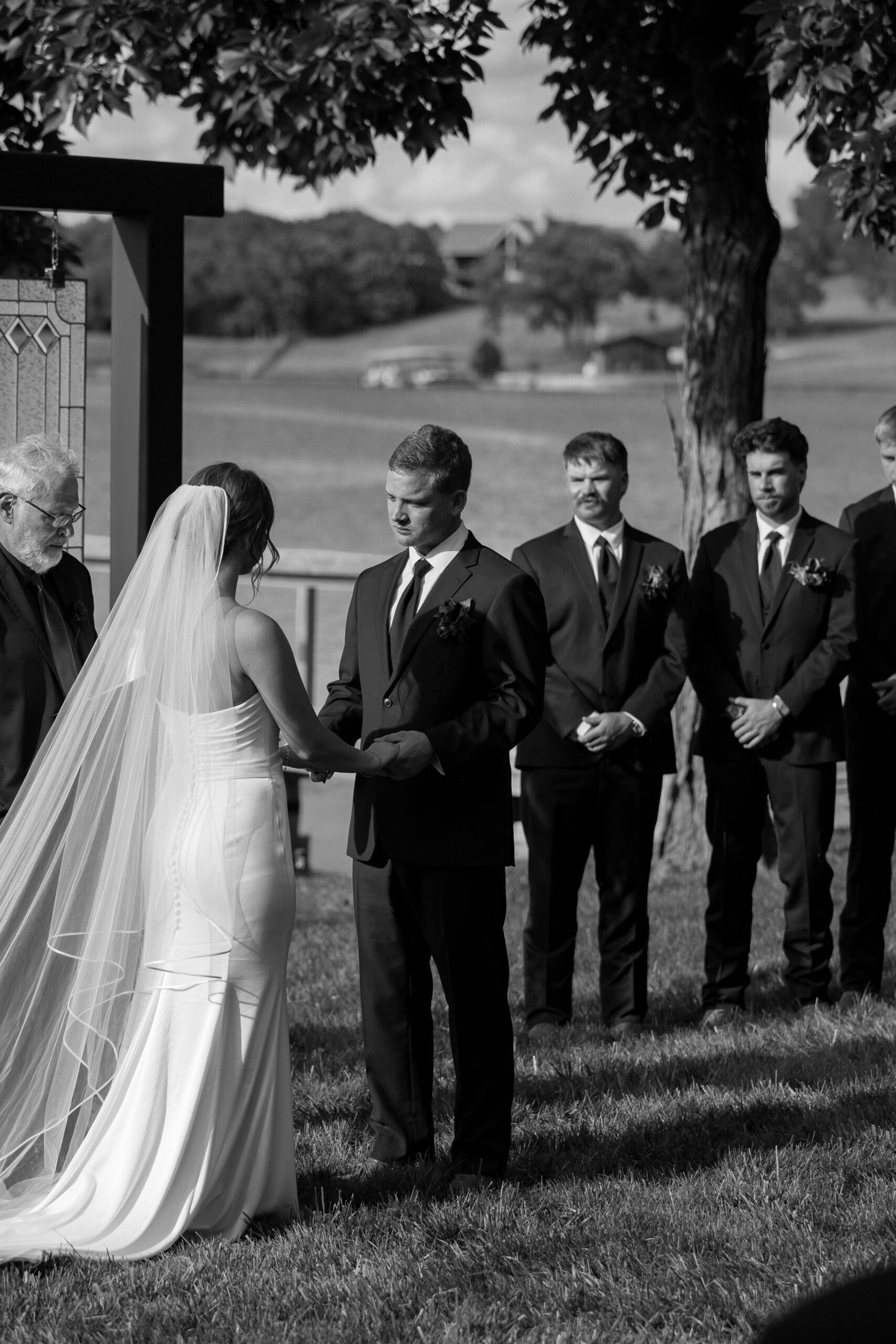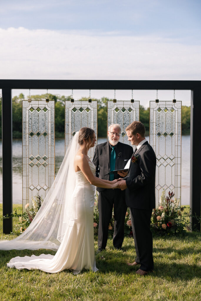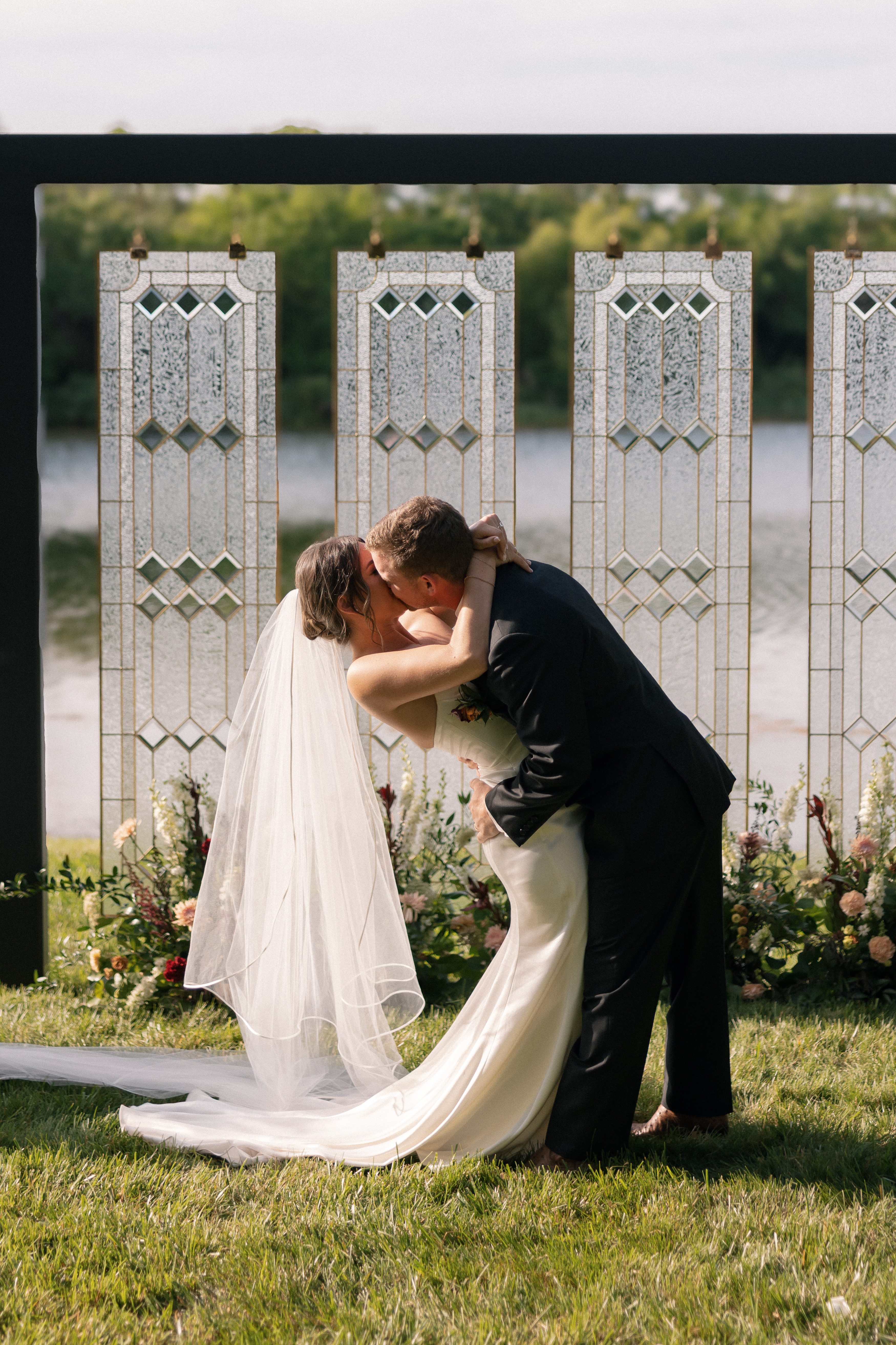 The ceremony backdrop was a true labor of love: four stunning stained glass windows, handcrafted by Malloryβs father, framed the altar with sentimental beauty and timeless charm. It set the tone for a day that was as heartfelt as it was breathtaking.