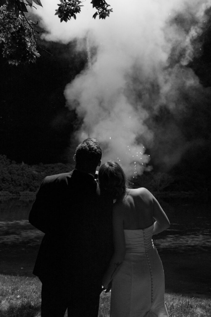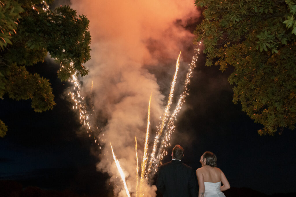 The night ended in the most magical way – with a dazzling fireworks show over the lake, lighting up the sky and reflecting off the water as the couple celebrated their first night as newlyweds.
